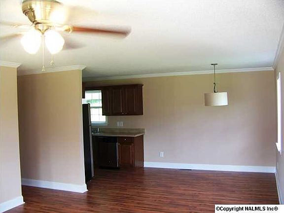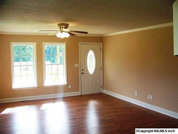 Completely updated 3 Bed 2 Full Bath home on 1 ac +/- just 20 min. from south Huntsville. Renovations include New Metal Roof, Vinyl Siding, all new Vinyl Windows, New Laminated Wood Flooring throughout, New Cabinets & Counter Tops, New Stainless Steel G.E. Appliances inc Ref. & Microwave, New Tile floors in both Baths & Laundry. New Bath fixtures. New Heat Pump & duct work. New doors & trim inc Crown Molding through out. Covered Front & Rear Porch. 100% Financing Possible.