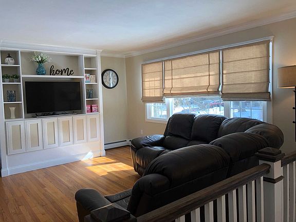 Welcome home! Step inside and see this meticulously-maintained raised ranch with many updates. Featuring solid wood cabinetry & doors; hardwood floors throughout, crown moldings, freshly painted. New windows, new siding, new appliances & light fixtures & new garage doors are just SOME of the recent updates! 3 bdrms, 1.5 baths plus a finished bsmt with den or office. Ample closet space. Add'l freezer in garage is included. This house sits on a beautiful, flat parcel of land, has an oversized deck and the home gets a lot of natural light. Roof is 10 yrs old; above ground oil tank is 3 years old. There is an existing WB fireplace that is not currently being used but can be easily converted back by new homeowner if desired. Taxes do not include possible STAR rebate of $890.