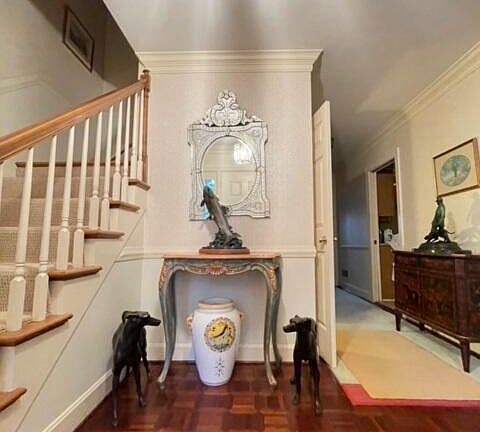 Serene Country Living. A beautiful traditional style Townhome overlooking the Hunting Creek Golf Course. The views are gorgeous of the woods in the front of the Townhome and the courtyard and rolling hills of the golf course in the rear. The brick-walled fenced Courtyard is your own private retreat. Great entertaining area includes large Living Room with built-ins, a fireplace and enclosed wet bar. Located next to this area is a Formal Dining Room. Both of these areas have triple sliding patio doors that open onto the large covered porch and courtyard. Enjoy park like views sitting on the upstairs balcony or on the covered porch. The large Kitchen is located right off the Dining Room and has a large buffet built-in area and a dining bar counter. Next to the beautiful Entry way is a cozy Family Room with built-ins and a large bay window that overlook the landscaped front yard and woods across the street. Located on the second floor is the expansive Primary Bedroom suite that opens with triple sliding glass door to the covered huge balcony. The view is beautiful with the rolling hills beyond the enclosed courtyard. The Primary Bath is spacious with a separate tub room with toilet and a shower room with toilet. It has a dressing area with huge vanity with double sinks, two large walk-in closets and two linen closets. There are two extra Bedrooms on this level, both with walk-in closets and a spacious Hall Bath. The basement is partially finished with a Great Room, large Laundry Room and a Bonus Room that could be a great home office or craft room. This townhome has the use of a detached 2.5 car garage owned by the HOA.
