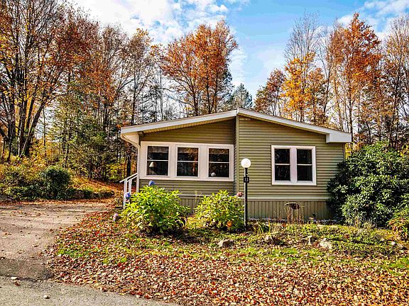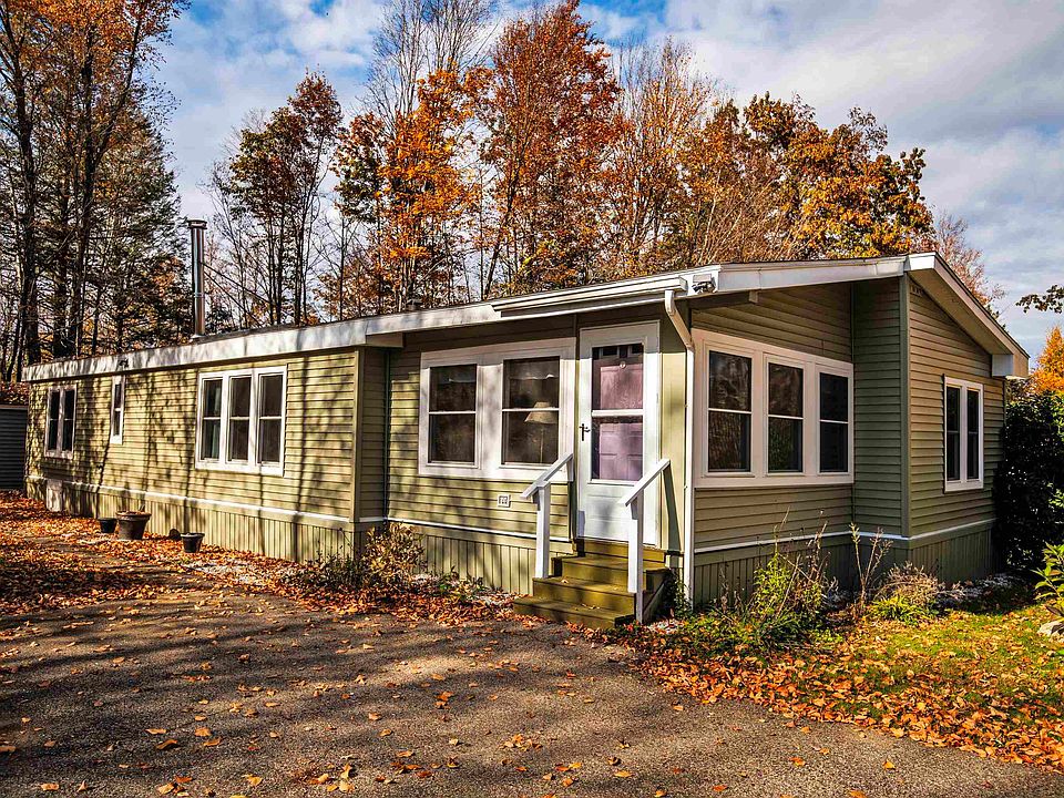 Spacious home in beautiful & peaceful Iron Wheel Park 55+ Community. As you walk through the front 3 season porch & enter the living room with cathedral ceiling & wood burning stove, you will notice the roomy, comfortable feel. Large kitchen has plenty of cabinets, counter space with breakfast bar & dining area with a built-in hutch. Just off the dining area is the laundry & another 3 season porch with a private deck overlooking the woods. This home has 2 bedrooms & 2 full bathrooms. The primary bedroom has its own private ensuite. Property comes with 2 storage sheds. Recent updates include a new roof, double pane windows, water heater, vinyl siding, kitchen ceiling, light fixtures, ceiling fans, extra insulation, to name a few. 2 person max occupancy. Pets are allowed. Quick closing possible. Schedule your showing today!