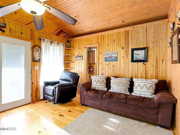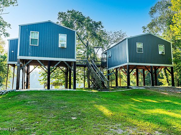 Fisherman's Dream located on the Leaf River with private sandbar. Once on top of the stairs you find two separate living cottages. Both have 2 bedrooms and 1 bath. Laundry room is attached on the end of the porch with plenty of storage. Nice cover porch overlooking the river to enjoy your morning coffee on. There is an elevator next to the stairs. Property comes furnished. Does not have a washer and dryer.