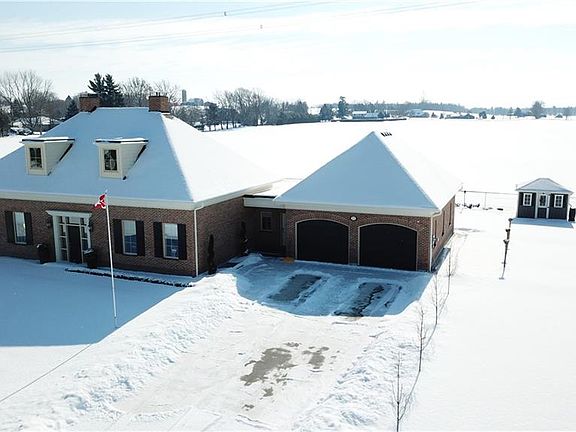Rarely does a home this well built come to market. Only 20 minuets south of the 401/403 corridor, this custom home, built by Dalm Homes, is perfect in everyway. Spray foamed floors and walls makes it very cost effective to heat, insulated and heated garage floors with an epoxy finish, secondary garage with overhead door to the back of the home, detached shed, and large concrete driveway with landscaping around the home. The main floor laundry and mudroom is oversized with porcelain heated floor, custom cabinetry, and a hallway leading to the main living area off of which is an office, master bedroom with ensuite. The kitchen with its hard surface counter tops, quality appliances, and great south views over open fields. The living room is also bright and spacious, plus a large finished basement with 2 bedrooms, bathroom, and secondary living area with a kitchenette. If you are looking for a retirement home, this is it!