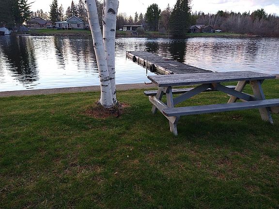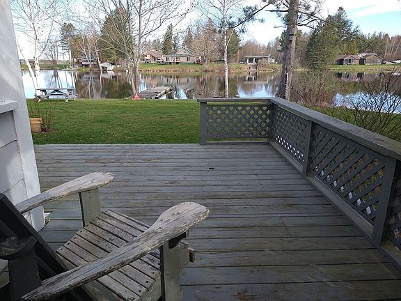 Perfect year round home or summer camp on the water. Swim or fish for salmon and bass off your private dock or take off in your boat and access the miles of lake and waterways right from your back yard. Two-story home with 3 bedrooms, 1 and 1/2 baths, large kitchen, dining room, living room, and bright sunroom with wood floors. Upper level has 2 BDR 1/2 bath and kitchenette space with a private entrance and a small deck overlooking the water. Home uniquely designed so that the living room, dining room, sun room and all bedrooms have great views of the water. Superb Sunsets from all these rooms or the back yard deck. New metal roof installed in 2020. Detached garage with attached small "fishing supplies" shed. Mature landscaping with flowering trees, lilac bushes and a raised bed garden. Nicely landscaped lawn right to the water's edge w/ retaining wall! On town water and sewer, but has fully functional private well. 15 minutes away for the famous fly fishing destination of Grand Lake Stream. Perfect for anyone who loves traditional Maine waterfront, the loon calls, the fishing, the beauty of life in the slow lane.