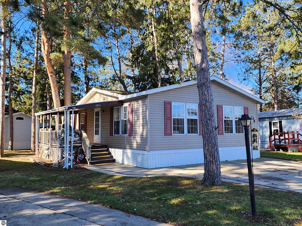 Are you ready for a view to enjoy no matter what the weather? This 2BR, 2 bath, double wide in Evergreen Village has a covered deck to enjoy the natural setting of the flowing Pine River including the vibrant sunrises. The kitchen was just updated with some (but not all) new cabinets, counter top and flooring. Both large BR's have walk-in closet and can handle multiple pcs of furniture. The buyer has to be approved by the park prior to closing, application in assoc. docs. Lot rent is currently $445 month.
