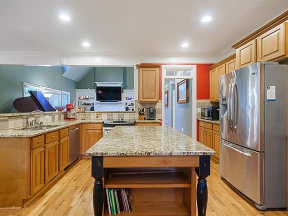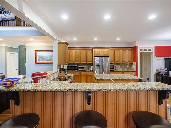 - Kitchen Features: Breakfast Bar, Cabinets Stain, Eat-in Kitchen, Pantry, View to Family Room, Stone Counters, Kitchen Island