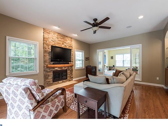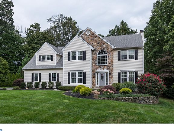 This house has everything! Completely Turnkey. Nestled on a quiet cul de sac and set back from the street, this expansive home provides ample privacy for peaceful living. The home sits on over a half acre in the South Ridge neighborhood. From a grand 2 story foyer, you will be led through French Doors to a bright living room equipped with in ceiling speakers wired for entertainment. Step down into the sunken great room with a floor-to-ceiling stone fireplace, custom illuminated built-ins, surround sound speakers, and sliding glass doors leading to the large top of the line TimberTech deck, with sunken hot tub and solar lighting. The great room is open to the Gourmet chef's kitchen featuring recessed lighting, 42" custom cherry cabinets with soft close drawers, Dulce la Vita granite / quartzite counters, and stainless-steel appliances, 6-burner gas stove with infrared heating lights, custom tile backsplash, farm sink, brushed copper faucet, center island, double wall oven with built in microwave/convection oven, built-in refrigerator surrounded by custom wine racks, glass cabinets, and convenient butler's pantry/area. You will find a formal dining room off the kitchen with in ceiling speakers, and a convenient 1st Floor Laundry Room/Mud Room as well as a half bath located on the main level. Upstairs, you'll find all 5 bedrooms each with ample space and large closets, as well as two full baths with double sink vanities. The large Master Suite includes a sitting room, Dual walk-in closets, and a spacious Master Bath with soaking jacuzzi tub, and in-ceiling speakers. The finished basement provides a large storage room, as well as significant extra living/entertaining space with a built-in wet bar, Workout Room/Gym, wired speakers with surround sound for entertaining, and a full bath with ceramic tiling. This home's beautifully landscaped outdoor space includes landscape lighting in the front and backyards, a fenced-in yard and custom stone retaining walls. Additionally, a large patio surrounds a new custom Anthony & Sylvan in-ground heated concrete pool with safety fencing, and this home offers a 2.5 car garage. The home is perfect for entertaining or just enjoying your own private oasis. Don't miss out on this gorgeous home! Be sure to view the Virtual Tour and Schedule a Showing Today!