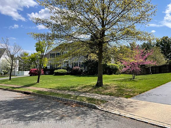 Centerhall Colonial on a cul de sac with beautifull colorful mature landscaping. Only 1 few minutes to Highway 35 & Route 18. Shopping, including Monmouth Mall and entertainment close by. 10 minute ride to the Beaches such as Asbury, Ocean Grove, Bradley, Belmar. Inside this sun drenched home, hardwood floors, 2 story foyer, Master Bedroom suite, with two extra large closets and soaking tub. Hall Bathrm serves three additional bed. First floor Bedroom has its own private bathroom facing the yard. Plus most of the basment is finished!
