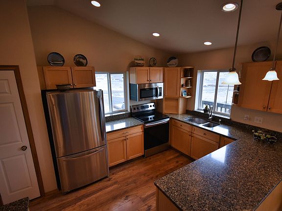 This home has something for everyone! Main level living, allows horses, ready for dogs and is a short drive from the lake! Conveniently located 11+ acres, spacious well appointed home. On main floor you will find master suite, 2nd bedroom, kitchen, dining & living room along with laundry. Kitchen boasts dovetail drawers, custom cabinets, quartz counters and stainless steel appliances. This living room needs no TV! Watch the storms roll through, amazing sunsets, a nice gas fireplace or the elk roam! Downstairs is a walkout basement, family room, 2 large bedrooms, workshop area, 3rd bathroom and plentiful storage. Outside enjoy time on one of the 3 decks or sitting in the hot spa for two! The gardens have beautiful perennials, violets and pine trees! The front yard has 5 foot chain-link around a large yard. Lots of room to bring and park all the toys! Even enough room to turn that boat or RV around in the driveway! Home would lend it self beautifully to multi generational living.