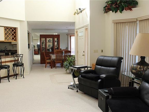 1st FLOOR LIVING at its best! Ranch End Unit. 2 Bedroom 1 1/2 bath one level townhome. Open floor plan with skylight to make it light and bright. Good sized kitchen with plenty of cupboards and counter space has ceramic tile floors and recessed lighting and also includes a breakfast bar. Main bath with jacuzzi tub and stand up shower. Large master bedroom with a whole wall of closet space. Serene view of the creek from both bedrooms or from the deck off of the front porch. 1st floor laundry. 2 car garage. Full unfinished basement. All appliances included and are newer. This is the one you have been waiting for!