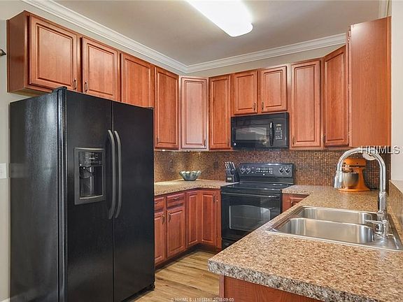 Adorableness on steroids! This 1,200 sq. ft townhouse, built in 2007, overlooks a large lagoon. Evenings in the screened-in Carolina room with lights twinkling off the lagoon are like a Thomas Kincade scene. This home boasts a sunny open floor plan, with newly installed wide plank luxury vinyl flooring, freshly painted, smooth ceilings, stainless steel appliances, and 42" kitchen cabinets. Move-in ready! Zoned for Pritchardville elementary and May River High school.