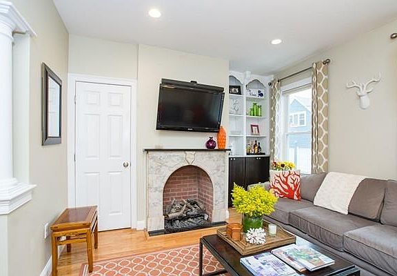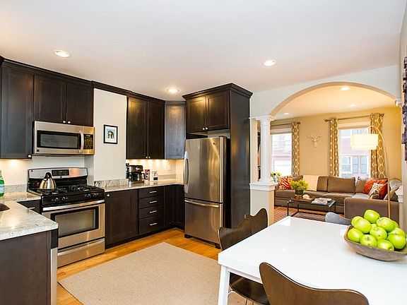 Beautiful, totally renovated ('12), 2 bed, 1.5 ba, +850 SF duplex home features C/A, W/D, private terrace. Upper floor offers an efficient layout. You enter the home into a south-facing livingroom, complemented by gas fireplace flanked by built-in book shelves. A traditionally-shaped archway separates the living space from the combination kitchen/dining area. The kitchen has espresso-colored cabinets, gas cooking, S/S appliances and granite countertops. Excellent storage and prep space. There is a guest bedroom/home office/nursery a largedand 1/2 bath (with W/D) adjacent to the kitchen. Directly off the kitchen, you'll find an easily accessible terrace, ideal for entertaining and relaxing. The lower level has large, private MBR (en suite with marble shower/Jacuzzi. There are 2, generous closets on this level and 2 utility closets/extra storage. Pets OK, H/W floors. Tankless hot water. Healthy reserves (~$7K), low condo fees ($99). Entire building rehabbed ('12). OFFERS DUE MONDAY, 3P.