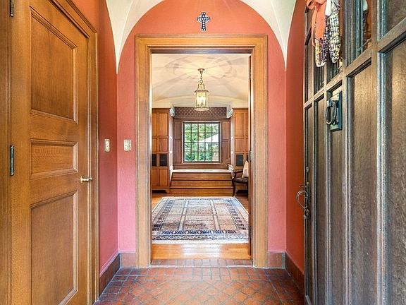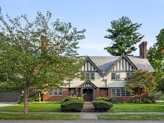 Welcome to The Sarah White Daniels House in coveted Bancroft Heights. This is a unique Tudor with Arts & Craft details as well as hallmark features of Tudor-style like its 3-front facing gables, copper gutters, slate roof, rounded doors, elaborate chimneys, multi-pane windows, and exquisite artisan woodwork inside and out. With 5-6 bedrooms and 4 full/2 half baths there's space for everyone. Enter the foyer and be impressed by the level of craftsmanship. The Dining Room is large yet inviting with timeless molding and details. The Dining Room was the site of the first meeting of present day Preservation Worcester. The high quality chef’s kitchen has a Viking gas range, VentAHood exhaust fan, double ovens, SubZero refrigerator, built-in desk area and hutch, and large island. The Great Room and Sunroom are grand spaces yet warm and cozy. Via the breezeway is access to the garage and backyard featuring a “sunken garden,” large fully-fenced yard, two patios, and mature perennial plantings.
