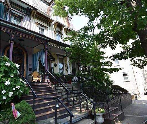 Amazing Easton Home in Historic Downtown. 2nd Empire French Victorian with Interior Federal Detailing. Fabulous neighborhood steps away from the State Theater, State Street Cafe, and two blocks from Centre Sq and the Easton Market. The home retains all the character of the original construction yet beautifully restored. 11 ft ceilings on 1st floor with arched doors, hardwood floors, floor to ceiling windows, all complimented by a gourmet kitchen with Wolf commercial stove, center island, separate breakfast area and a walk-in pantry with attached laundry and half bath. Spectacular 3 story open staircase with original curved handrail and balusters. The 2nd floor offers two spacious bedrooms plus a third room that is currently an exercise space but could also double as bedroom/office/walk-in closet. Two additional bedrooms on 3rd Floor. High efficiency gas furnace. The house is enhanced by fabulous covered front porch and rear yard patio and garden.