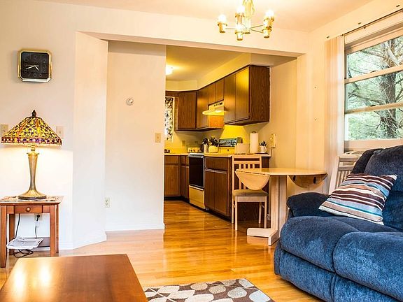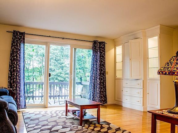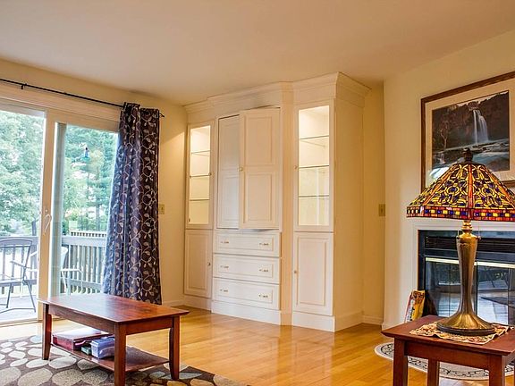 These condos are a hidden gem that RARELY come up for sale. There are only 20 units in this quiet development overlooking Sawyer Pond (Bents Pond on Google Maps). This well maintained unit is move-in ready, and has a fantastic view of the pond from the back deck. The first floor layout is very efficient, offering a 1/2 bath, hardwood flooring throughout the living space, a fireplace, a beautiful built-in, lots of natural light, and a great view. Upstairs you'll find a master bedroom with walk-in closet, a full bathroom, and a 2nd bedroom. The walk-out basement is finished with quality materials, and has it's own heat zone; many possibilities for this space. The value offered here is hard to match: low price, low condo fee ($200/month), low taxes ($1901.64 for 2016), water view, quick access to Route 68, and move-in condition! Scoop this one up before someone else does.