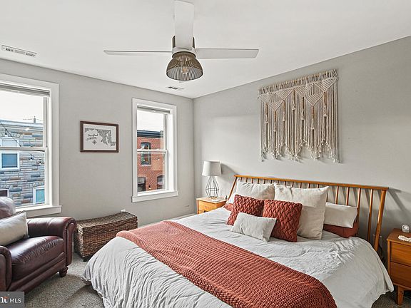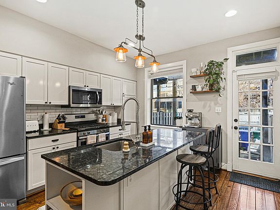 This Renovated, 3 Level, 3 Bedroom, 2 Full Bath Rowhome with a Parking Pad is located one block from Patterson Park! The High Ceiling, Large Windows, and Open Concept grab your Attention Immediately. Rustic Gleaming Hardwood Floors welcome you to the open & airy Main Level of the home. The Living room features a bright, painted brick accent wall, recessed lighting, ceiling fan, large windows, and transom window to let in plenty of natural light. Continue to the Dining Room and on to the Gourmet Kitchen featuring Stainless Steel appliances, Subway tile backsplash, Gas Cooking, Island with built in shelving, dishwasher, pendant lighting, Granite countertops and a Breakfast Bar. A French door leads you to the rear that is currently set up as a outdoor space perfect for entertaining family and friends, but can easily be converted back to a parking pad. Make your way to the Upper Level using the custom open stairway to find the Primary bedroom with carpeting, ceiling fan and a spacious wall closet. The Luxurious Upper-Level Full Bath features a tub-shower combination, tile surround, tile flooring and built-in shelving. Bedroom 2 is next with carpeting, and a French door to the deck. Enjoy your morning coffee or unwind in the evening with sunsets and views of the city. The Lower-level features Bedroom 3 with carpeting and a wall closet, Plus, another Full Bath with walk-in shower, tile flooring and built-in shelving. The Large Storage Area with laundry and mechanicals is also found in the lower level. This Home is located one block from “Baltimore’s Backyard” Patterson Park, with 155-acres of greenery, large trees, paved walkways, historic sites, playgrounds, athletic fields, a swimming pool, an ice-skating rink, the Historic Patterson Park observatory and the 2.5 acre lake featuring open water and wetland habitats for fish, waterfowl and songbirds. Additionally, you’re moments away from dining, breweries, and art galleries. Updates to this home include a newer Gas hot water heater and a rear door. Don’t Miss this Move-In Ready Home in the sought-after community of Patterson Park!