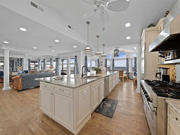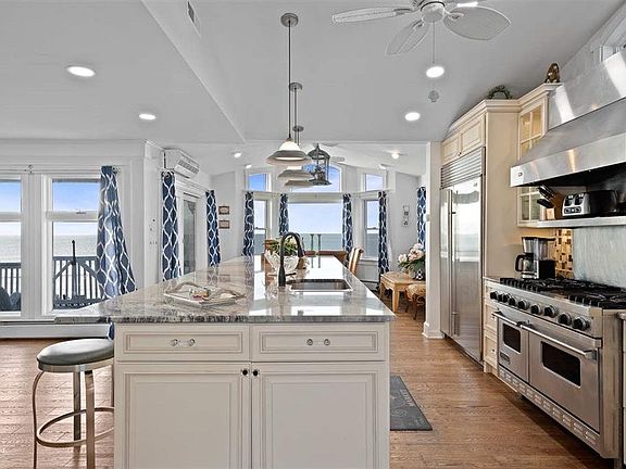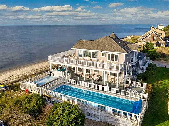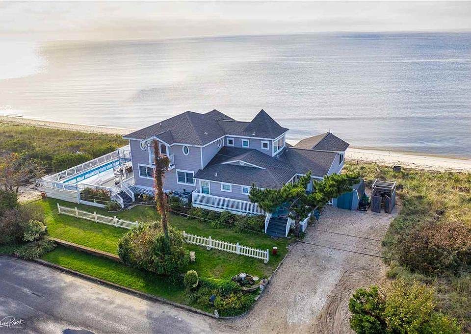 Tremendous 6 bedroom, 5 bath beachfront home on the Delaware Bay located steps to the water with enormous pool and separate hot tub! As you walk through the front door you are greeted with a dramatic gourmet kitchen and a 50' long open span with a bank of oversized windows looking out onto the bay. The kitchen features newer custom cabinets, 48" Viking double oven, side by side stainless-steel Sub-Zero fridge/freezer and a huge 5' x 16' granite center island with two sinks. The beautiful hardwood flooring runs throughout the large open span which includes the formal dining room and family room. There are four bedrooms on this level - 1 en-suite, 1 bedroom with an adjacent full hall bath, and 2 bedrooms that share a Jack and Jill bathroom. Walk out onto the large waterfront wrap around deck and there is a spacious outdoor dining area, lounge area with outdoor TV, huge 40' heated pool and 17' spa with swim resistance that can accommodate 18 people. The 2nd floor has 2 more bedrooms, one en-suite with large windows looking out onto the shoreline. The other is the spacious master suite with beautiful water views. Walk through the slider to the fiberglass deck with lounge chairs for relaxing as you listen to the waves lap against the shore. The over-size 160' wide by 125' deep lot can also be subdivided to add another buildable lot. 2020 RENTAL INCOME OF OVER $274,000 makes this a keen investment opportunity as well. Whether you are looking for a great investment, family compound or subdivide and sell off the extra lot... the possibilities are endless.