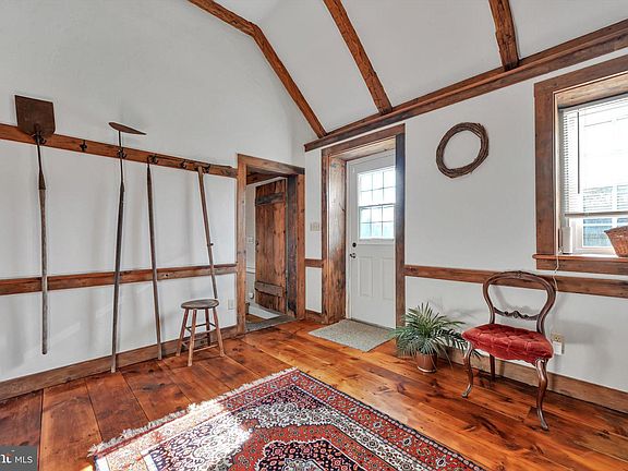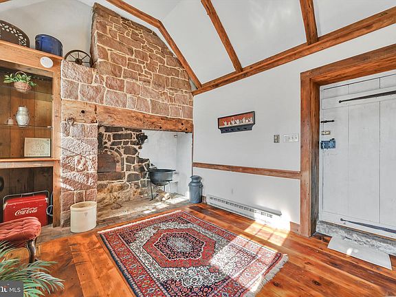Your stepping back in time as you enter the 1760 home with many of the original, well cared for features. It has been professionally restored as not to damage the integrity of the home. Walk in stone fireplace with bee hive oven including era utensils (was summer kitchen or butcher shop), exposed stone walls in the family room and one of the bedrooms, beautiful cherry and white oak floors, brick flooring in the kitchen, original doors and exposed beams. Brick patio and walkways, copper down spouts, newer metal roof, 4'x3' window sills and a gas stove in the family room. Plus an over sized 2 car detached garage with second floor living area. Cedar shake roof, newer bathroom. wood siding and skylights. This beautiful, unique property could be yours.