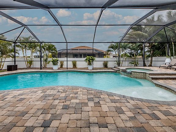No need to wait forever to build a custom home this beautiful recently REMODELLED 4-bedroom home with heated SALTWATER POOL & SPA will check the boxes & more! As you enter the home via screened front entry with attractive glass double doors your welcomed into an open floor plan with huge volume celling's, attractive 48 inch TILE THROUGHOUT ,6" baseboard,shiplap accents in kitchen,laundry room,master bed,bath & guest room, attractive framing around windows, 8ft solid core interior doors, new light fixtures & fans. Attention detail continues in the kitchen featuring large island with beautiful granite tops infused with quartzite accents, farm sink ,tonnes of cabinets & separate coffee/wine bar area & well-appointed dining room is off the kitchen & overlooks the pool.The master suite is total Zen with tray ceiling & spa style bathroom with stunning walk shower that has double herring bone tile surround,dual shower heads &pebble stone floor,dual vanity's with vessel sinks , free form tub.The backyard oasis is fenced,the spa spills over into the beautiful pool, lanai area has plenty of room to get sun/sundeck & also a separate paved firepit/seating area outside of pool cage if desired.