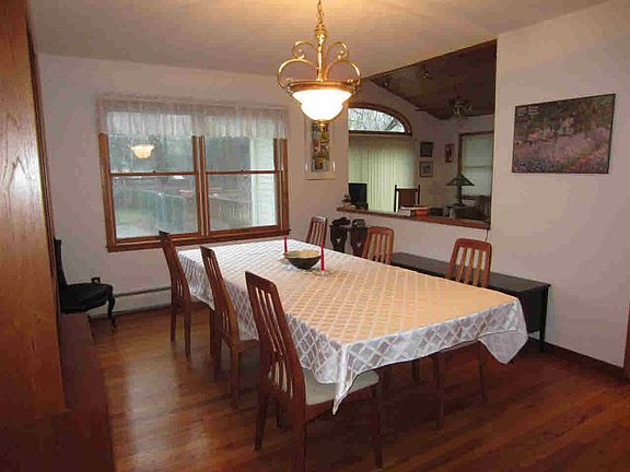 Pool is open...! Well maintained ranch style home is warm & inviting. Manteled fireplace w/built-in book shelves, invites you to curl up by the fire. Plenty of light from bow window to brighten the whole room. Company sized dining room, familyroom/sunroom is just beautiful! Vaulted, knotty pine ceilings. Glass door lead you to a sunny deck overlooking the yard and pool. New appliances & ceramic tile floors in the eat in kitchen. Sparkling hardwoods throughout this 3 bedroom, 2 bath home w/Central Air.Mature plantings, gardens and shed.