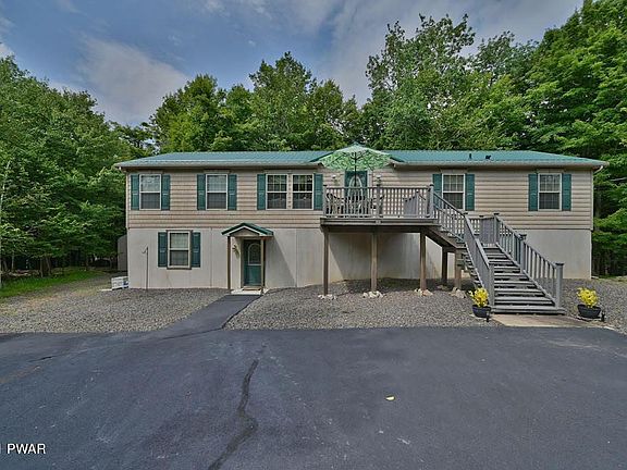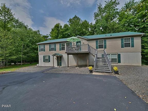 Beautiful 5 bedroom 3 bath home with guest quarters/in-law suite, located on a private cul-de-sac in a four season amenity filled community in The Northern Poconos. The main level has so much space, a living room, family room, large dining room and access to the rear Florida room, deck, kitchen with island, large pantry; laundry room off kitchen. There's a master bedroom with full bath and two additional bedrooms. The walk out lower level is like another house! Spacious rooms, high ceilings, kitchenette, two additional bedrooms and a full bathroom. Central A/C and Central propane fired hot water baseboard heat. Plenty of storage throughout this home. Paved driveway too!