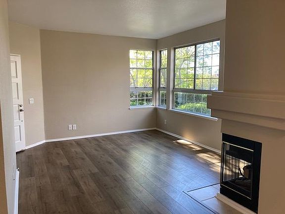 2 Bed/2 Bath condo with Direct Access single garage. Open living room with gas fireplace and luxury vinyl plank wood flooring. Kitchen with new white shaker cabinets, granite countertops, and ceramic tile flooring. Quaint dining area off kitchen leading to small enclosed patio. Large sized master bedroom with mirrored closets throughout. In unit - Full size washer and dryer available for renter to use. Unit has air conditioning. Condo is located by grocery store, shops, restaurants and parks. This is a Casafina community with large pool and spa. Additional access to SAMLARC Beach Club & Lagoon, pickle ball, parks & pools. Open house this Saturday, February 22nd. 10:00 - 2:00 or by appointment if needed. Renter responsible for water, gas, and electricity. Deposit due at signing. 1 car garage and 1 assigned parking space. No smoking allowed.