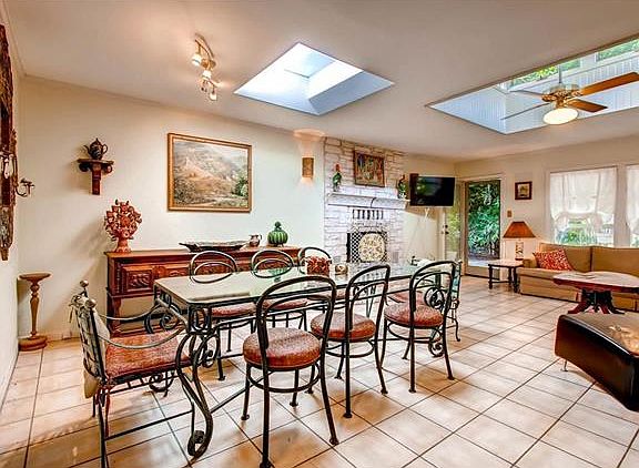 Lovely original home in the heart of Tarrytown on a 90ft wide lot! This three bedroom, two bath home offers ample natural lighting with beautiful skylights and features a relaxing, air-conditioned sunroom. Hardwood floors, cozy stone fireplace, custom mosaic work, and an open living/dining concept add to the charm of this home. Home backs to a dry creek with beautiful foliage which creates serenity and privacy. Easy access to Tarrytown Park, Mopac and shops on Exposition!
