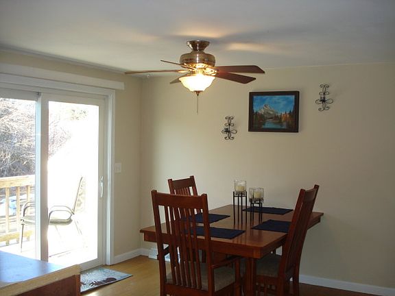 Come Home Today! Perfect for the first time buyer or empty nester. 5 rm, 2 bedroom, 1.5 bath end unit. Wonderful cathedral ceilings in master bedroom. Hardwood flooring on first level. Lots of closet space and storage. Pets allowed. Private back yard with great deck overlooking woodland area. Commuter location.