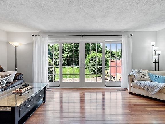 This bright and cheerful end unit with stunning views is located in the highly sought after Fiske commons community at the foot of historic Meriam Hill, abutting the Fiske Elementary School. It is near the Ava Govan Bird Sanctuary, Diamond middle school - just a short walk to the town center. Lovely tree lined streets create an inviting village like setting. The community consists of 45 Classic New England styled homes sited on 16 beautiful acres around a picturesque meadow. This unit has been thoughtfully updated. Gorgeous hardwood floors throughout. Home has installed energy efficient heat and A/C unit. The kitchen boasts wood cabinets with granite and stainless appliances. The basement is finished with space suitable for playroom and a home office, plus storage. The delightful brick patio is perfect for entertaining. Newly updated bathrooms and some fresh interior paint, 2022 new hot water tank.