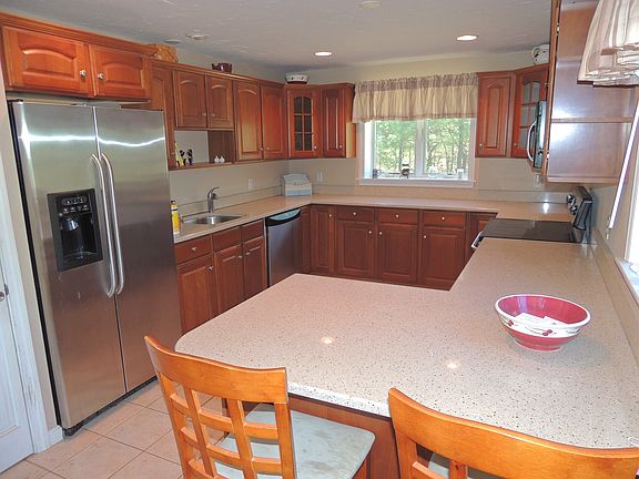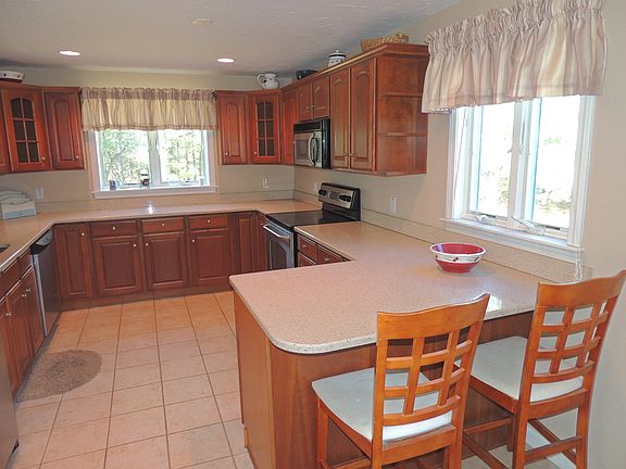 Welcome home to 13 Seawood Rd Wareham! Bright & Sunny Cape home w/3 flrs of living so plenty of space for family & visitors! Located on acre lot on quiet wooded street, close to all area amenities, beaches & boating minutes away! Nice outdoor space w/2 sliders to wrap around deck w/Azek decking great for entertaining, firepit, spacious paved driveway w/room for your BOAT! Desirable open floor plan w/ cathedral living room & dining room, gleaming hardwood floors w/pellet stove, cabinet packed kitchen w/quartz countertops, stainless appliances & breakfast bar, 1st flr main bedroom, full bath & 1st flr laundry. The 2nd flr offers 2 spacious bedrooms w/cathedral ceilings & 2nd full bath. Lower level partially finished w/family room & bonus room/home office w/barn door, central AC w/ mini-splits & solar panels, recent roof & title 5 septic system (2019), upgraded stone retaining walls & front steps, 1-car garage & storage shed. 1st showings OH Sun. Jan 9th from 12-2pm. Don't miss it!