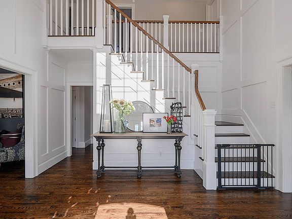 This magnificent custom colonial on 8 acres is located in one of the finest areas of town. Gorgeous millwork throughout the main level including extensive picture frame molding and coffered ceilings. The great room with a brick herringbone fireplace is spacious and filled with light. The dining room is open to both the kitchen and the great room, making for flawless entertaining. An office off of the foyer has beautiful built-in shelving and cabinets. The kitchen is the heart of this home with pristine white cabinetry and stunning counters. Appliances include a Viking gas range and dishwasher and side by side refrigerator and freezer. A huge mudroom with built-ins and a closet with a barn-style door is conveniently located right off the garage entrance. All of the rooms are graciously sized with a perfect flow from room to room. The upper level houses the master suite featuring a sitting area, gas fireplace, large walk-in closet, and tray ceiling. The master bath offers double vanities with marble counters, a jacuzzi tub, and an oversized marble tiled walk-in shower with two rain heads! There are three other bedrooms and two full baths on this level, with one of the bedrooms offering an attached sitting room or playroom. The third floor is a large finished space with a vaulted ceiling currently being used as a playroom but could be used as a media room or 5th bedroom if desired. This Energy Star Rated home is close to lower Fairfield County for an easy down county commute. Plenty of room for a pool and the lower level is just waiting to be finished. All on 8 Acres. Simply amazing. The back yard is fully fenced in with.