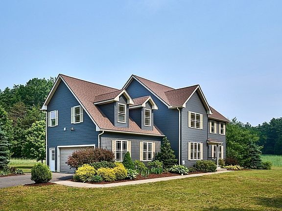 Tucked between Route 47 and 116 and just moments from the area colleges, this quiet oasis sits in one of the most desirable areas of Hadley. Sip your iced tea on your back deck and enjoy the expansive view as the sun sets in brilliant orange between the trees. Step out into your yard and pluck a fresh apple or handful or raspberries. While inside, choose between one of two master suites, and let your toes enjoy the silky new maple floors. A well thought out open floor plan with generously proportioned spaces allow room for everyone to spread out and makes for great entertaining.The gas fireplace in the living room is sure to warm up those chilly nights.Second floor laundry is well situated just outside the bedrooms. An updated kitchen and fresh stylish paint are calling for you to make them your home. Icing on the cake? Unlike most of the neighborhood, there is no HOA or restrictive covenants to be found. Your imagination is your only limit!