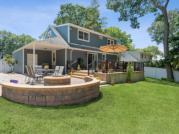 Welcome to this Charming, Expanded, and Newly Renovated Cape Located in the Maplewood Section of Huntington Station. The First Floor Boasts an Open Concept Floorplan with Public Spaces Open to Each Other. There Are 2 Bedrooms on the First Floor and 3 Bedrooms on the Second Floor. The Bedrooms are Interchangeable as a Den, Office, Etc. to Meet Your Family's Personal Needs.There is a Full Basement, that is Partially Finished with Ceramic Tile Flooring and a Convenient Outside Entrance. The Backyard is Accessible thru the Sliding Glass Doors in the Dining Area.The Backyard is Private and Serene, Completely Fenced in, Includes an Expansive Maintenance Free Deck and an Incredible Paver Patio. Enjoy Quiet Evenings Around Your Custom Stone Fire-pit. This Home is Move-in Condition and Needs Nothing But Your Family To Come, Unpack, and Start Making Memories.