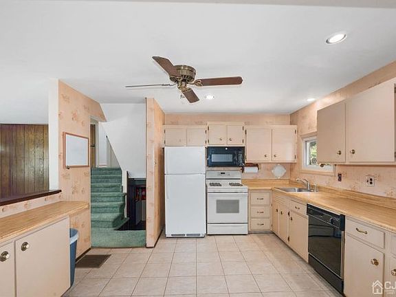 Back on Market! Mid-Century Split level home on quiet street boasting addition of a Dining Room, 1 2 Bath, and Office 4th Bedroom on the main level. Serene fenced yard with deck and retractable awning, and enclosed spa. Some hardwood under carpets. Replaced windows. Master Bedroom on its own level upstairs with access to walk up attic and walk-in closet. Vinyl siding and 2-car wide driveway. Close to schools, transportation (NYC Bus) and shopping! Waiting for your imagination and personal touches! Strictly as is. Sellers will make no repairs changes.