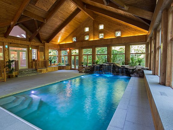 Set on 7.4 acres, this exceptional estate is one of the finest properties in Western Connecticut. Its location, amenities and quality are that of a fine resort. The gated home has been painstakingly remodeled and improved since purchased in 2004, with a major remodel in 2006 and subsequent improvements in 2010 and 2012. The home itself is almost 7000 sq ft and includes 5 bedrooms, 4 bathrooms, a gourmet kitchen, sun room, family room, formal dining room, formal living room/library, and a beautiful indoor pool room with 24 foot soaring ceilings, 5 french doors and a top of the line ozone treated, chlorine free gunite pool with remote controlled waterfalls built from stone reclaimed from the property. The home also has a 400 sq ft finished basement which serves as a wonderful gym or game room. With $4 million invested, the property and home are exceptional. In 2012, an equestrian facility was added to the property, which includes a 70x160 riding arena.