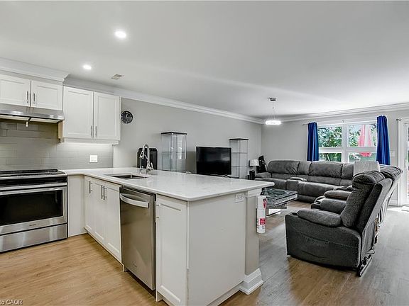 Welcome to St. Elizabeth Village – Hamilton’s premier gated 55+ community! This beautifully renovated 960 sq. ft. bungalow offers stylish, carefree one-floor living with no stairs. Inside, you’ll find a thoughtfully designed 1-bedroom, 1-bathroom layout featuring a modern bathroom with a walk-in shower—perfect for ease of use and mobility. The open-concept kitchen flows seamlessly into the spacious living and dining area, complete with a large peninsula that seats at least four. It’s an ideal setup for entertaining or enjoying your morning coffee with friends. Set beside one of the community’s tranquil ponds, this home combines peaceful surroundings with unbeatable convenience. You’re just a short stroll from the Village’s incredible amenities: a heated indoor pool, gym, saunas, hot tub, golf simulator, woodworking shop, stained glass studio, doctor’s office, pharmacy, massage clinic, public transit access, and more! Plus, you’re only a 5-minute drive to grocery stores, shopping, and restaurants. Move-in ready and perfectly located, this home is a rare opportunity to enjoy the best of maintenance-free living in a community that has it all. Don’t miss your chance!