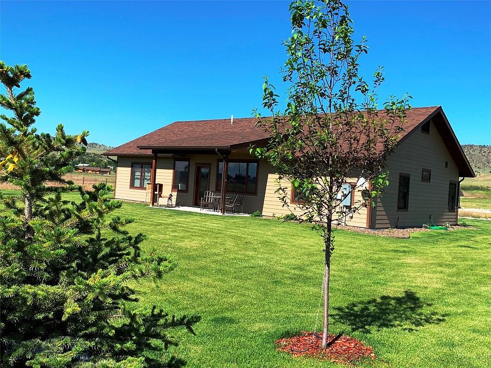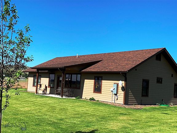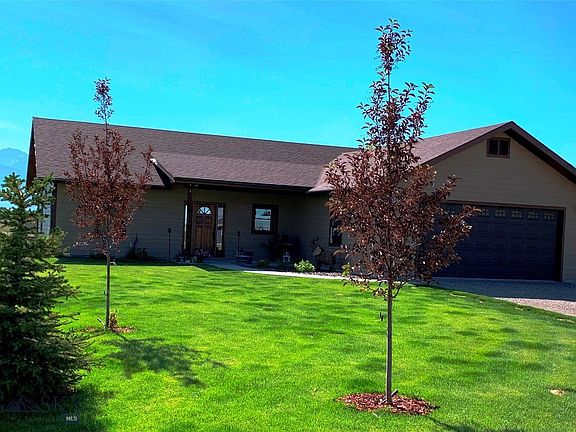 Beautiful upgrades and finishing touches in this well built 3 bedroom-2 bath home on a spacious 1.6 acre parcel just north of downtown Ennis. The open floor plan (living room, dining area, and kitchen) creates the heart of the home where living begins. The many amenities include beautiful matching granite counter tops (eating bar, kitchen tops, and vanity tops in both bathrooms), custom soft close cabinets, 5" white oak wood floors, Pella windows, 96% efficient propane forced air furnace (1000 gallon owned buried propane tank), air conditioning, R21 in the exterior walls, R49 in the ceiling, R11 Interior walls for soundproofing, custom tile shower in master bath along with soaker tub. Home is surrounded by 14,000 SF lawn with underground sprinklers (trees are on a drip system). Double car attached garage and massive views of the Madison Mountains completes your new home. The subdivision itself has common area parks, pond with picnic area, and access to Madison Meadows Golf Course.