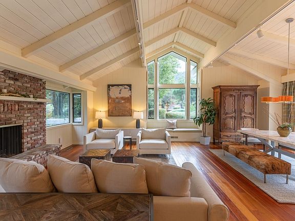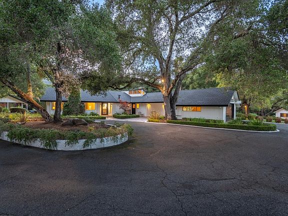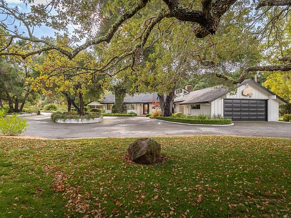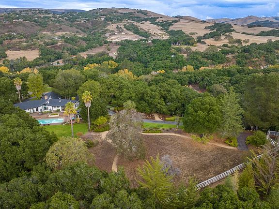 Welcome to your retreat in Sleepy Hollow, an exclusive gated neighborhood a few minutes from Carmel Valley Village. This sprawling single-level California ranch home on a private 6+ acre estate offers luxury and tranquility. The three bedrooms, two bathrooms, plus an office estate includes a spacious primary suite with a walk-in closet and picturesque views. Enjoy the warmth of wood-burning fireplaces, open beam ceilings, and hardwood floors in both the main living room and family room. Step through a large sliding door to the patio overlooking the pool, cabana, and extensive lawn, embodying the essence of California living. The property includes a one-bedroom guest house (650 Sq Ft,) with attached media studio (700 Sq Ft), catering to creative pursuits. Surrounded by oak trees and bathed in sunlight, the entrance through a private gate ensures a peaceful sanctuary while offering breathtaking views in every direction. Seize the chance to own this unique Carmel Valley estate!