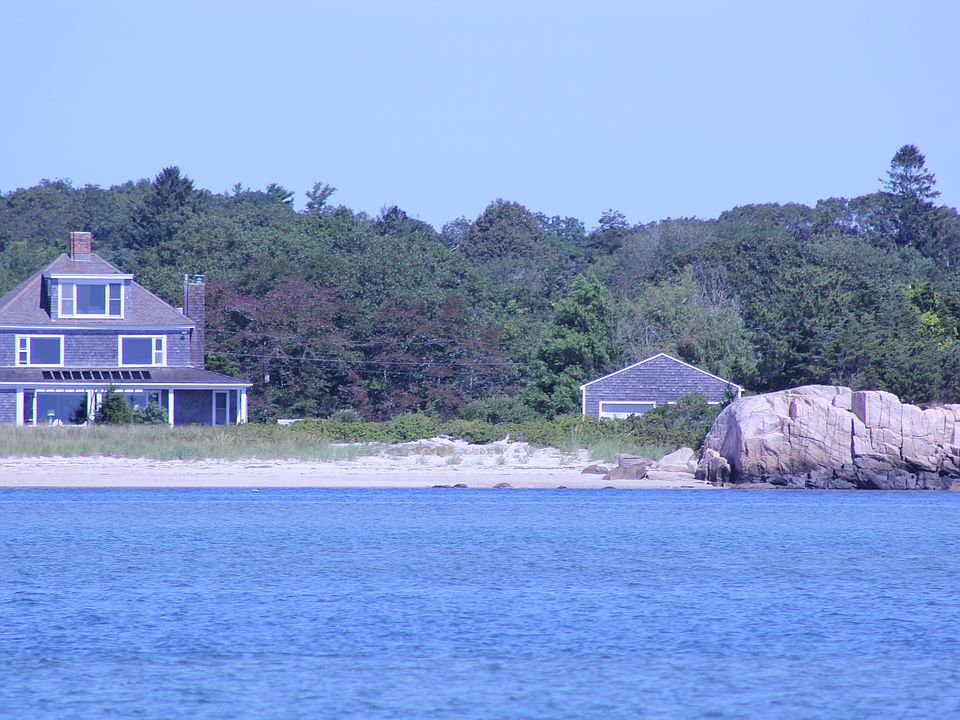 OCEANFRONT- SOUTH DARTMOUTH!!! Quintessential beach house nestled in the dunes and located in a small private seaside enclave. Intoxicating ocean views from every room in the wonderfully renovated home at the shore. Living room features beach stone fireplace and a wall of glass looking south, over Buzzards Bay to the Islands beyond...Modern kitchen with over-sized granite island opens to dining room and spacious screened porch..Cozy study with custom built-ins..four bedrooms, all with amazing views, hardwood floors, bead board, nooks and crannies, detached garage, out-door shower, stone walls, moorings... Protected by Mishaum and Potomska Points, situated on a stunning white sandy beach. The property offers boating, swimming, fishing and endless summer breezes. Located a few miles from the quaint village of Padanaram with its shops, restaurants and yacht club; bring the kids, bathing suits, dogs, kayaks or just a bottle of wine and enjoy this fabulous year round beach house.
