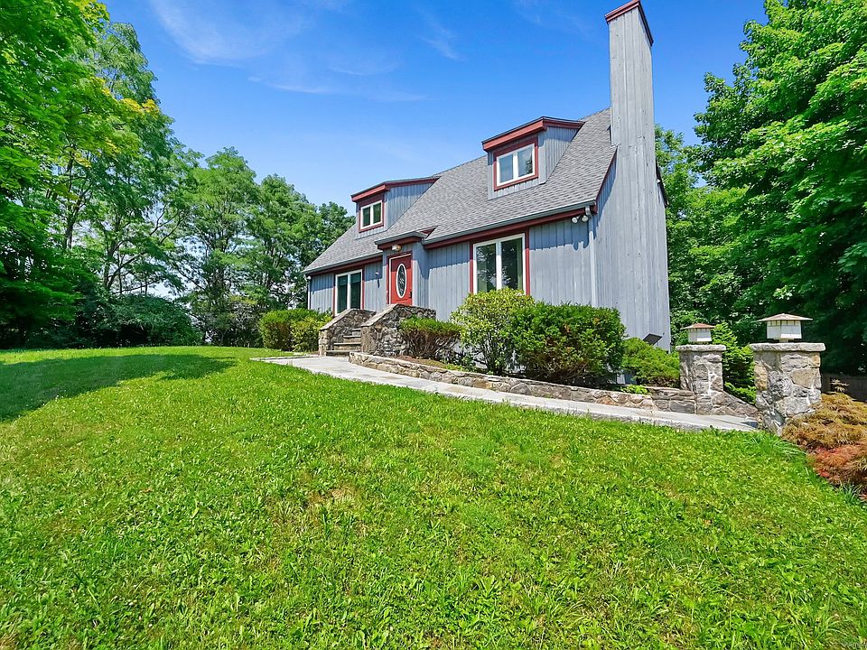 This Charming Contemporary is situated down a long and private driveway on .46 acres of secluded land. The home has been well kept and cared for over the many past years and is ready for its new owner. Upon Entry you'll find a very functional layout. The Family Room which features a fireplace opens into the Dining Room. Spacious Kitchen with an eat-in area that has a slider to the back deck. The Main level also offers a Den/Office and a full bathroom. The Bedrooms are upstairs with a Primary that features a walk-in closet and access into the full bathroom. 2 additional spacious Bedrooms make up the 2nd story. The Lower Level is unfinished with tons of potential for additional space and access to the 2 Car garage. The home features an efficient electric heat pump and central air. The property is lovely, with a 2 tiered deck and a level yard. You'll enjoy making this place your home.