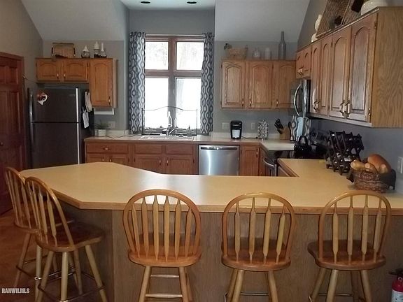 This 4 bedroom 3 bath home is centrally located in the resort core of the Galena Territory just a short distance to the walking paths, Eagle Ridge Inn, North Club House and the General Store. The property is beautifully treed, bordered on 3 sides by greenspace and has central sewer. The professional landscaping offers an attractive stone walkway and firepit for outdoor family fun. The focal point of the impressive great room is the brick wood burning fireplace which is accented by the lofted ceilings, wood floors and wall of windows giving the home a touch of the outdoors. The back of the home features a wrap around deck that has access to the screen porch, dining and living areas and the Master Bedroom. You will find plenty of counterspace, cabinets, SS appliances, pantry, desk area and an eat at counter in the large kitchen. The spacious main level Master bedroom offers vaulted ceilings, two closets and double sinks. There is also a guest bedroom featured on the main level. The lower level has newer carpet, 2 additional guest bedrooms, 1 bath and a generous family room with wet bar and pool table area. The laundry room is large enough to hold cabinets, sink, appliances and can accommodate an extra sleeping area if needed. Other features of the home include: gas on demand water heater, six panel doors, paved parking area and newly tiled floors in all baths. (js48)