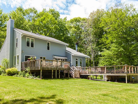 This beautifully updated contemporary home at the end of "Sperry Woods", is the last home on a shared driveway, and sits on almost 2.5 peaceful acres. The square footage of the house (not including the heated finished room in the large spacious basement) is 2279 sq. feet, with 4 bedrooms & 2 full bathrooms in addition to a half-bath. The Master Bedroom Suite features a huge walk-in closet, and an incredibly beautiful updated Master Bath that has radiant heat floors, an air tub, large glass-walled shower, Corian countertops, double sinks and custom maple cabinetry. Must be seen! The high-ceilinged sunken living room on the lower level has a propane fireplace, and is open to the dining area. The recently updated kitchen showcases custom maple cabinets, granite countertops, lot's of natural light, and is open to the family room. From the sliders in the kitchen, you walk out to the beautiful decks which lead to the private above-ground pool, seating areas and an outdoor shower. Oversized two-car garage has lots of room for storage.