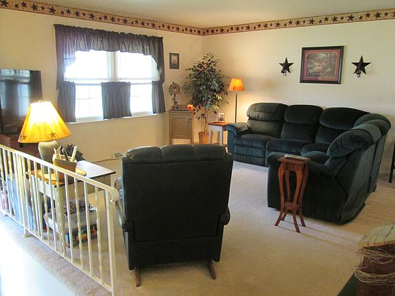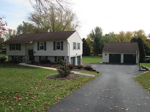 Spacious 3 bedroom, 2.5 bath home on 1 acre country lot. Open 1st floor living area, newly updated master bath & family room with fireplace & wood stove insert in daylight basement. Detached 2-car garage with storage above, plus 2-car attached garage! All new tilt-in replacement windows. Large deck overlooks great backyard with stream behind. Great quiet country location but close to all amenities.