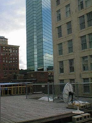 Back Bay.. Stanhope St... Located midway between the Back Bay & South End on a quiet street steps to the Back Bay T Station and John Hancock Tower... Massive top floor triangular shaped Loft features hardwood floors, many windows on two sides, exposed brick walls, very high timber-beamed ceilings with huge sky lights, open fully-applianced kitchen with stainless steel counters and large bar area, 1.5 tiled baths. Flexible open layout with many possibilities. Washer/Dryer in the Unit. Huge Common Roof Deck. Heat & hot water included. Avail. 8/1 for $3200.