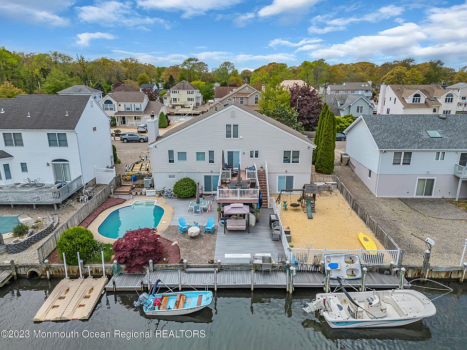 Bayville waterfront with 4 Bedrooms and 3 full Bathrooms is ready for its new owners at the Jersey Shore. With an updated kitchen to include granite countertops, stainless steel appliances and recessed lighting that opens up into the great room with a fireplace. There is a bedroom and full bathroom located on the first floor. This waterfront beauty provides approximately 80 feet of water frontage, plenty of room for large boats or multiple water crafts. A separate living space on the lower level provides a living room area and kitchenette which include a stove, sink area and refrigerator. Perfect for weekend guests, adult children or senior parents. Just step out of the sliding glass doors on to your multi tier deck overlooking the in-ground pool. Spacious master bedroom on second floor. with a very large walk-in closet and a full updated bathroom. This home is located only minutes from the Barnegat Bay and popular Jersey Shore Beaches and attractions.