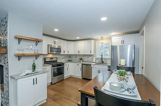STUNNING, recently renovated home in desirable Westlands neighborhood! Single level living with open concept layout. Bright & sunny new kitchen opens to dining and living room featuring gorgeous floors throughout main living area, fireplace and a large picture window, allowing for plenty of natural light. Beautiful kitchen with new white maple cabinets, granite counters, marble tile backsplash, gas range, stainless steel appliances, & coffee/wine bar. Primary Suite boasts new private 3/4 bath, custom tiled 5' walk-in shower and vanity w/quartz countertops. 2 additional bedrooms with glistening hardwood floors. 2nd bath has a double vanity, tiled tub surround and floor. All new Harvey Windows and new interior doors. 1st floor laundry. Freshly painted in soothing, modern colors. Ample storage with coat closet, linen closet. Spacious unfinished basement with potential for expansion. FHA/gas heat. Central A/C(2021), 200 amp, Storage shed. Level yard with room for entertaining and fun!