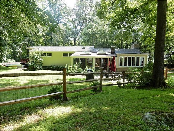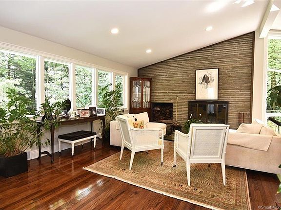 Distinctive mid century modern home with beautiful renovations. Sited on 2 private acres in a desirable lower Weston neighborhood. Convenient location only a short distance from Route 136 for an easy commute. More than 3,000 square feet with soaring ceilings, walls of glass, skylights, hardwood floors and central air conditioning. Light and bright and wonderful open flow for today's lifestyle. Large vaulted ceiling living room with a handcrafted stone fireplace. Fantastic chef's kitchen with granite countertops and top shelf appliances. (indeed the hub of activity) Lovely vaulted ceiling master bedroom with a private deck, woodburning stove and a new upscale bathroom with a steam shower and heated floor. Three additional bedrooms down the hallway with a 2018 "wow" skylit bath. Spacious walk-out lower level with home office, playroom and an ideal au pair or inlaw area. A walk-in cedar closet for off season storage. Inviting inground heated 20 x 40 pool and patio for outdoor pleasures. Canine fencing in place. Wood burning stoves in the master bedroom and in the lower level office. Plus a generator for year round peace of mind. Just move in and enjoy the wonderful life in Weston!