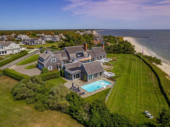 Discover the unparalleled beauty of this unique beachfront property as you pull onto the cobblestone driveway, adorned with lovely gardens. A blend of luxury and tranquility awaits, featuring an expansive green lawn that leads to a private assoc beach on Nantucket Sound. Upon entering the airy and light-filled entrance, you are greeted by breathtaking ocean views and open living spaces that transition seamlessly to the outdoors, perfect for effortless entertaining. This spacious residence is designed to capture water views from every room. The first-floor primary suite is a haven of comfort, overlooking the pool and offering a his-and-her bathroom and dressing area. The second-floor deck provides a perfect retreat to soak in the spectacular views, or you can curl up by the fireplace in the vaulted living room while listening to the rolling waves in the evening. Additional conveniences include a 3-car garage, a laundry room, and a pantry. Relax by the pool, on your private beach, or take advantage of the association dock for kayaking adventures on the Herring River. Embrace the elegance and charm of waterfront living and create many years of cherished memories on Cape Cod.
