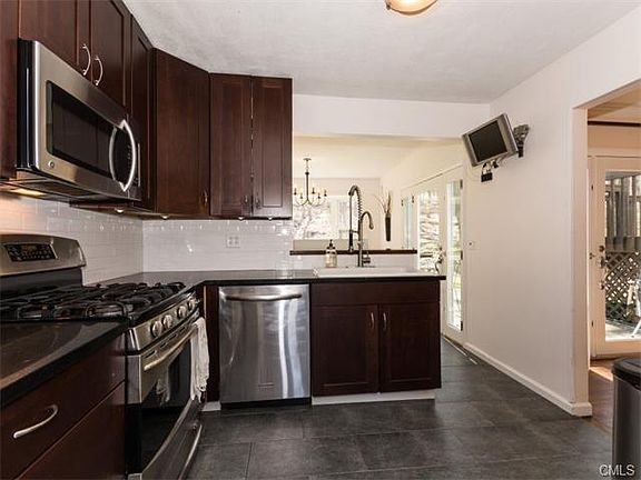 Priced to sell! Charming home w/countless recent updates. Freshly painted inside & out, refinished hwd floors, & more! Great entertaining flow from dining room w/French doors to deck Cozy liv room w/fireplace.Tastefully renovated kitchen w/sunny breakfast area. Spacious family room w/wood burning stove w/sliders to deck.Master bedroom- updated en-suite bath w/jetted tub, two walk-in closets, dressing area. Finished lower level(400 sq ft incl) has playroom,updated full bath,fourth bedroom,private entrance- perfect for au-pair/guests. Gorgeous park like property w/incredible perennial gardens,stone walls, foundation plantings. New furnace, newer roof/gutters. Quiet neighborhood close to schools, shopping, commuting options.Excellent value!