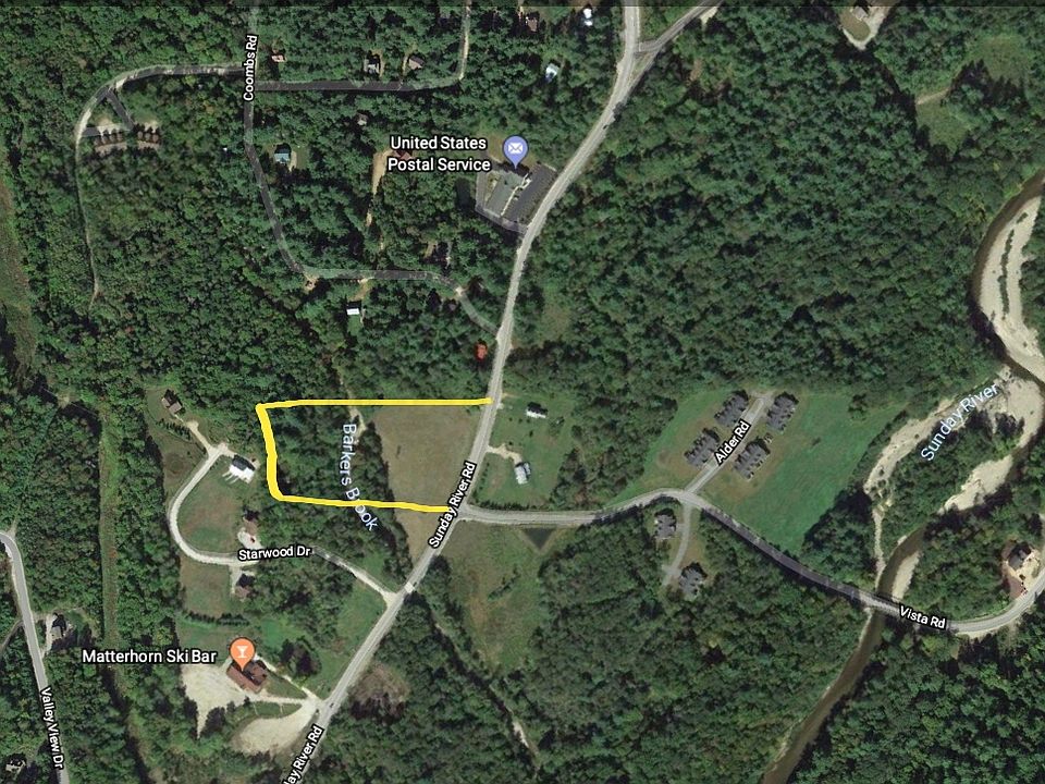 6.78 acres residential/ business. Views of Sunday River slopes. 3mins to Sunday River resort. Waterfront on Barker Brook.