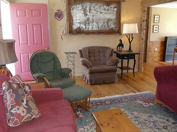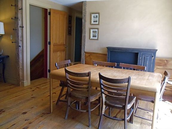 Delightful village Ranch with gorgeous custom old barn wood kitchen cabinets built by the best craftsman. Wide board pine floors, antique hand hewn beams, open floor plan, sliders to deck overlooking the Dutcher golf course and stone walls. The recently built barn has an office, a loft and a 1 car garage, with electricity and electric heat. A great studio or home office. The basement is currently used as a workshop but could be finished living space. Basement cabinets and wood stove are excluded. Short walk to shops and train.